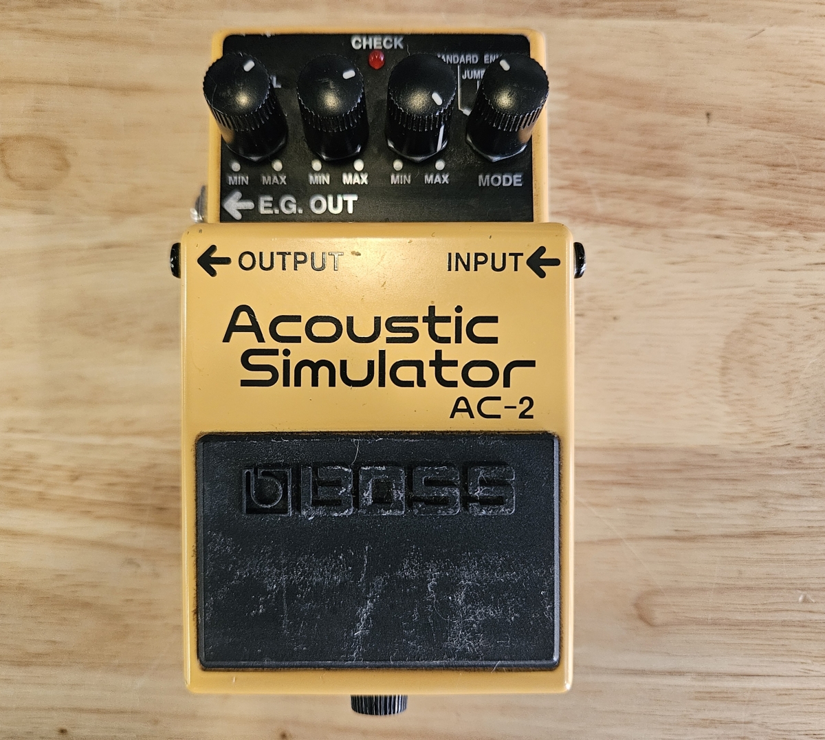 La BOSS AC-2 Acoustic Simulator permet de changer le son d'une guitare électrique en guitare acoustique. Elle offre quatre modes "standard," "Jumbo," "Enhanced" and "Piezo"