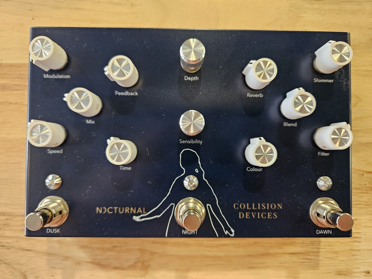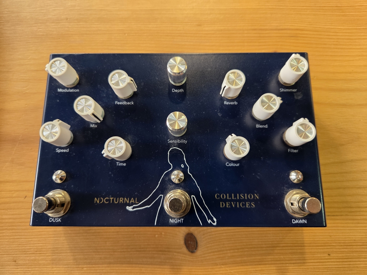 3 effets intégrés: Dusk = Modulation Delay, Night = Dynamic Tremolo, Dawn = Shimmer Reverb