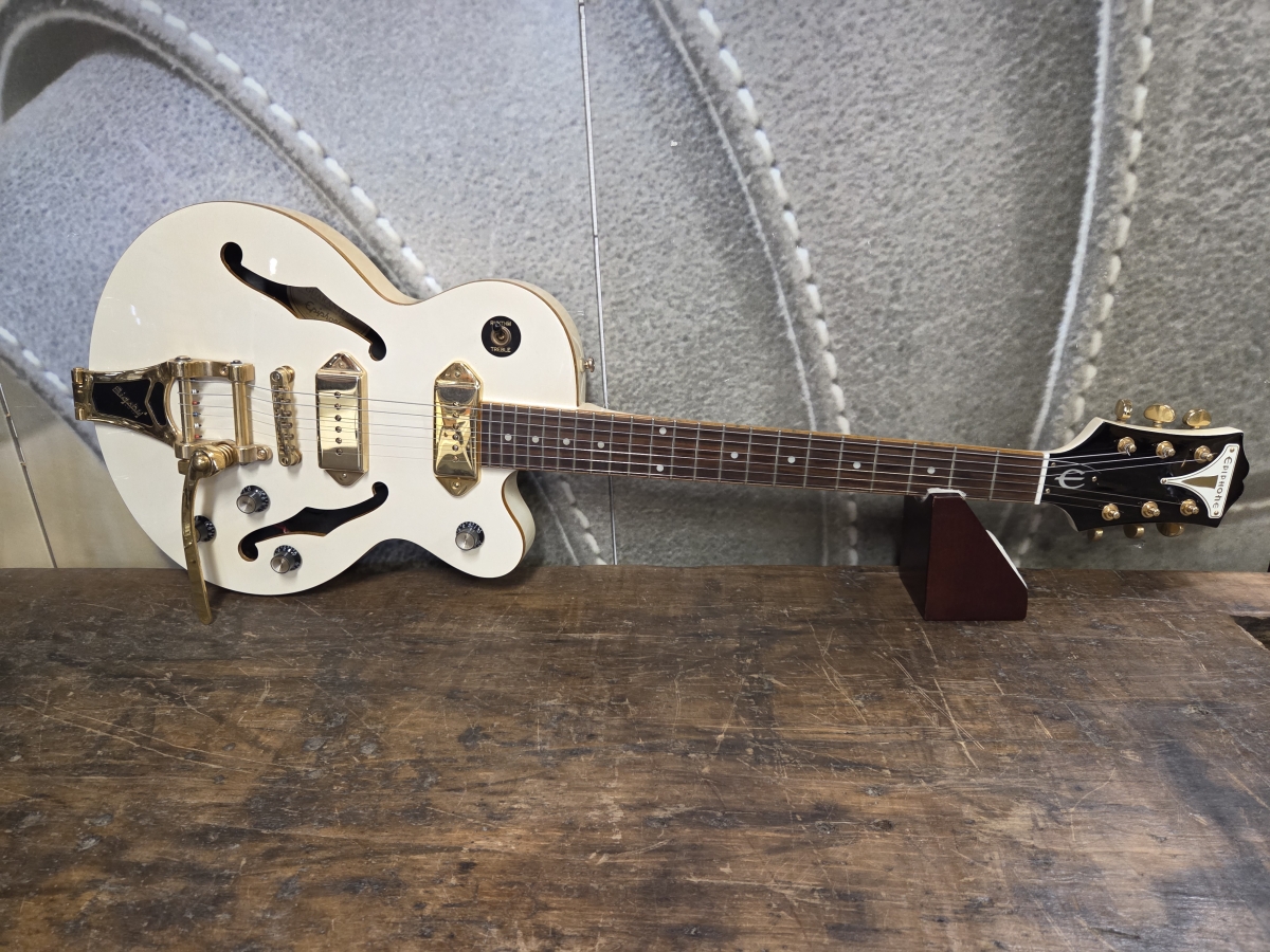 SERIE LIMITEE - Epiphone Wildkat Royale possède un corps en Acajou laminé avec table en Erable laminé, 2 micros simple bobinage Epiphone Alnico V P-90 et un vibrato Bigsby.