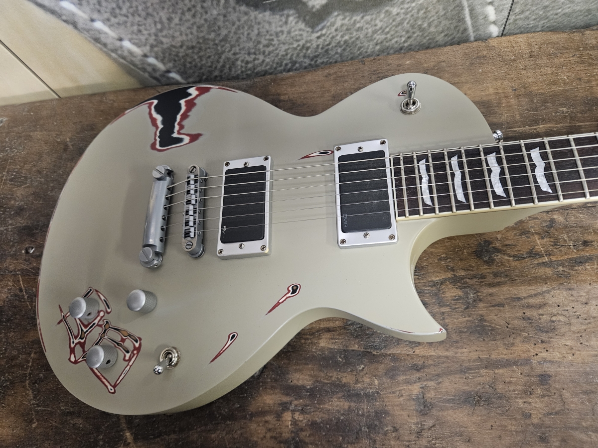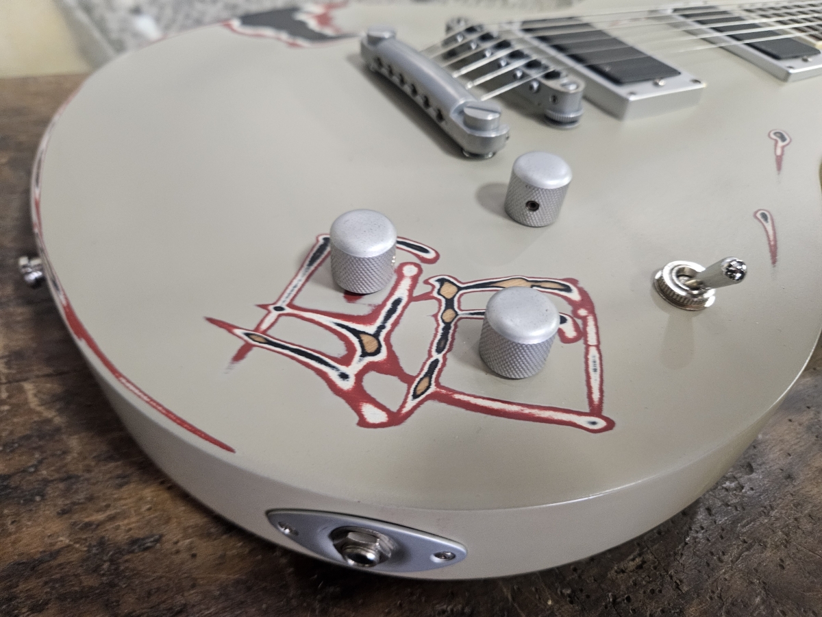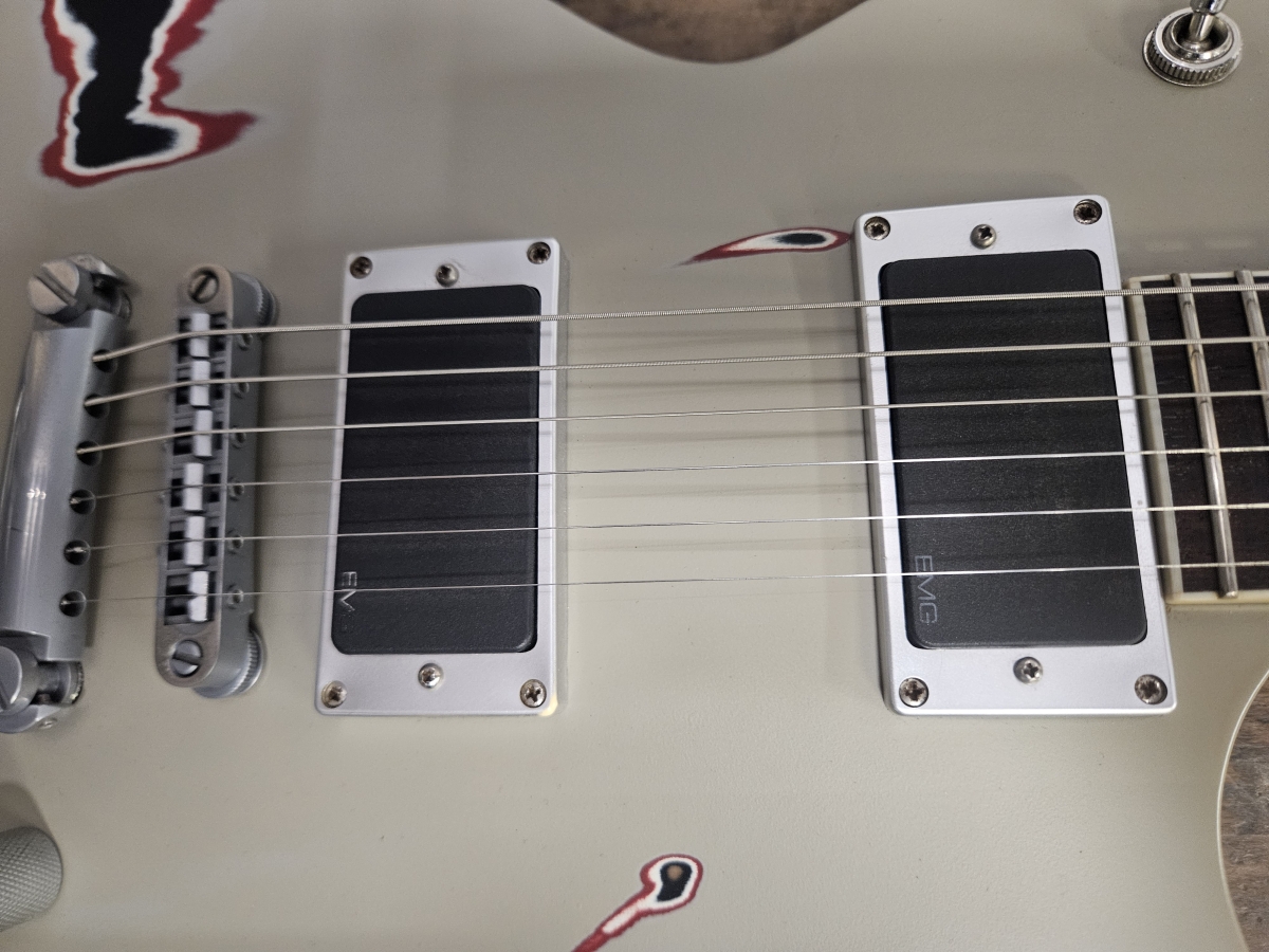 Contrôles : 2 volumes, tonalité, sélecteur de micros 3 positions (note : le sélecteur en haut du corps est inactif)