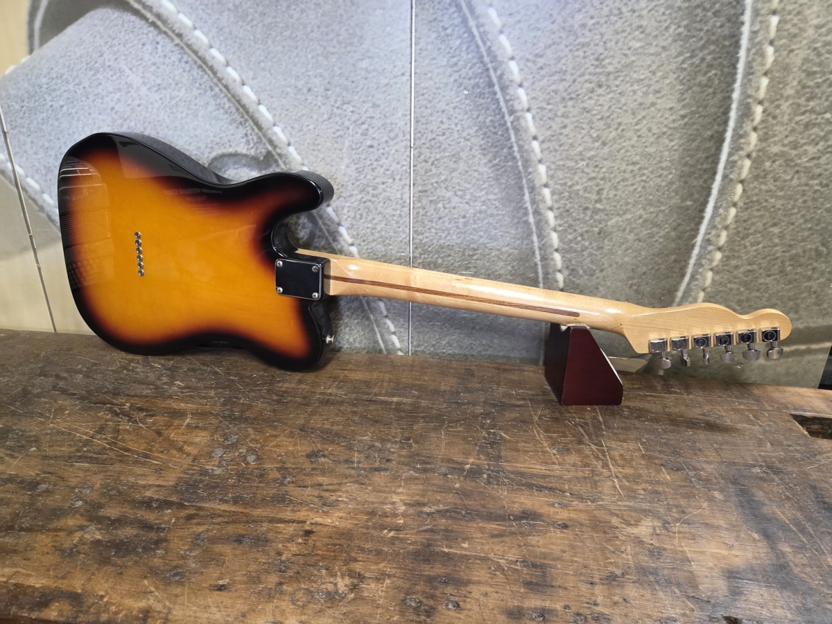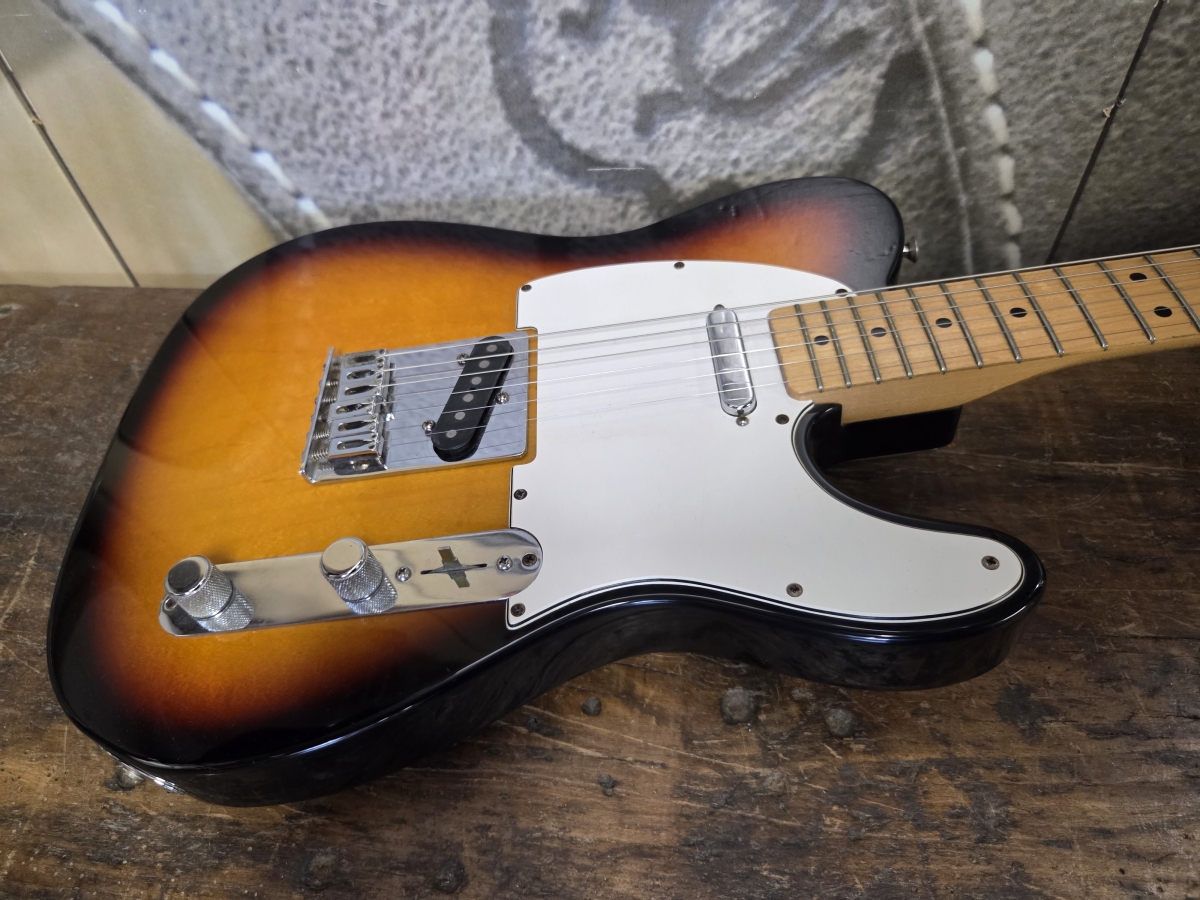 Une Telecaster en très belle état pour 32 ans. Rien à signaler à part quelques griffes de jeu. On a ici une mexicaine des belles années. Une guitare simple et efficace de conception classique, corps en aulne, manche vissé en érable, touche en érable.