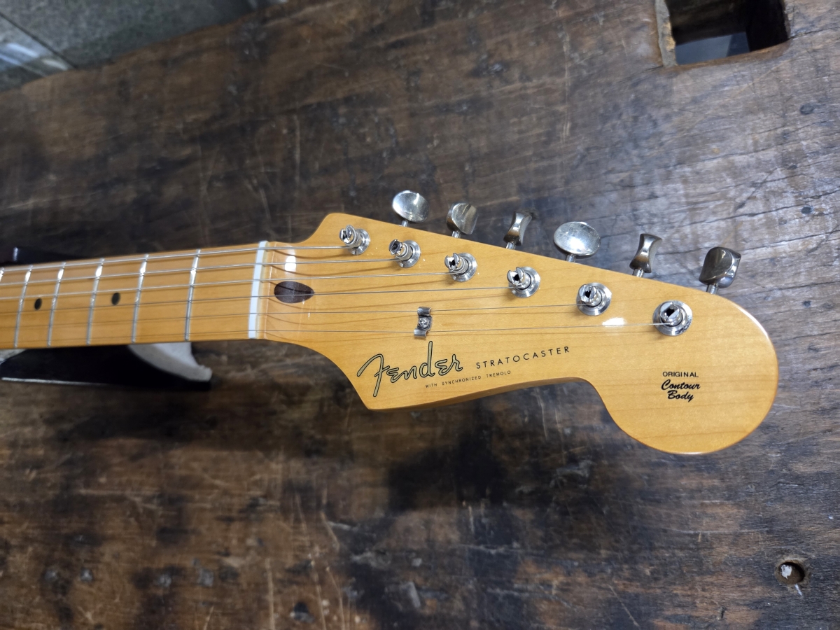 La FENDER Vintera 50's Stratocaster est une guitare électrique solid body pourvue d'un corps en Aulne, d'un manche et d'une touche en Erable (profil soft V, radius 7.25"), de micros type années 50 et d'un accastillage style vintage.
