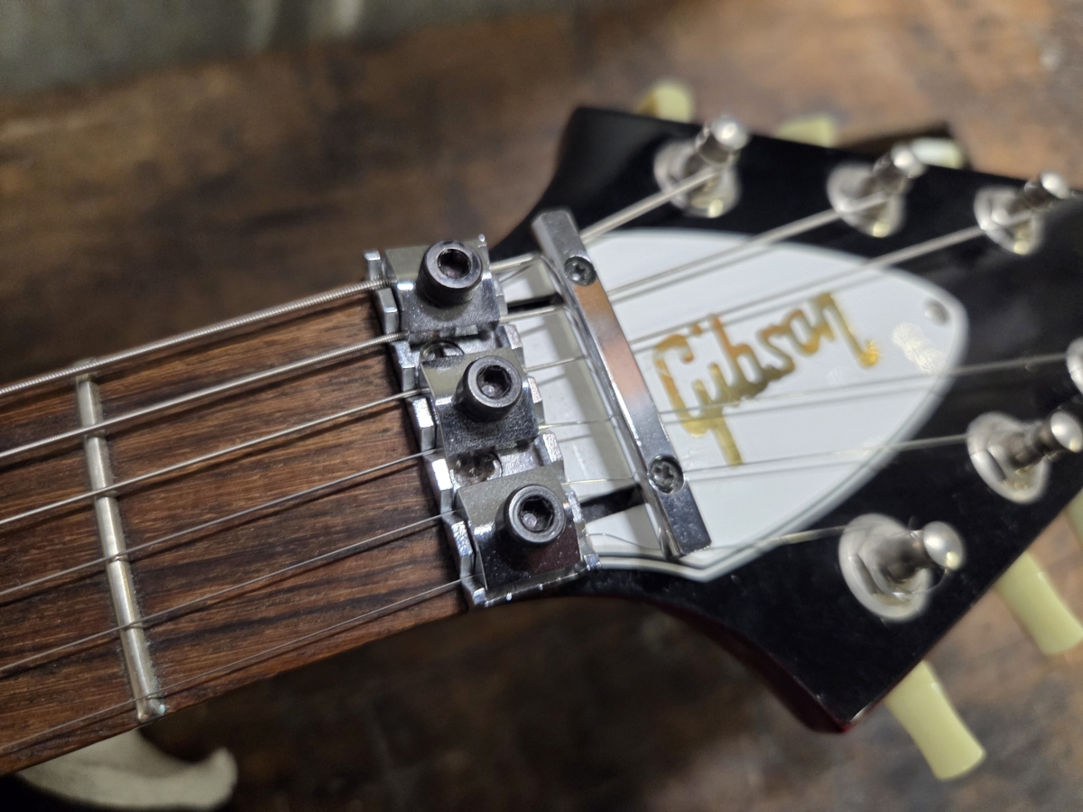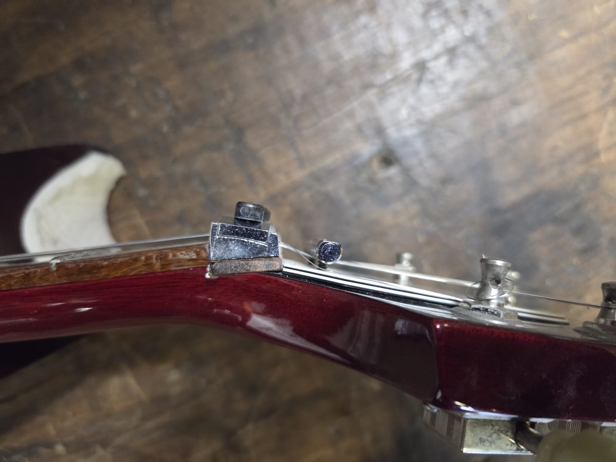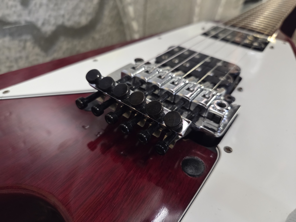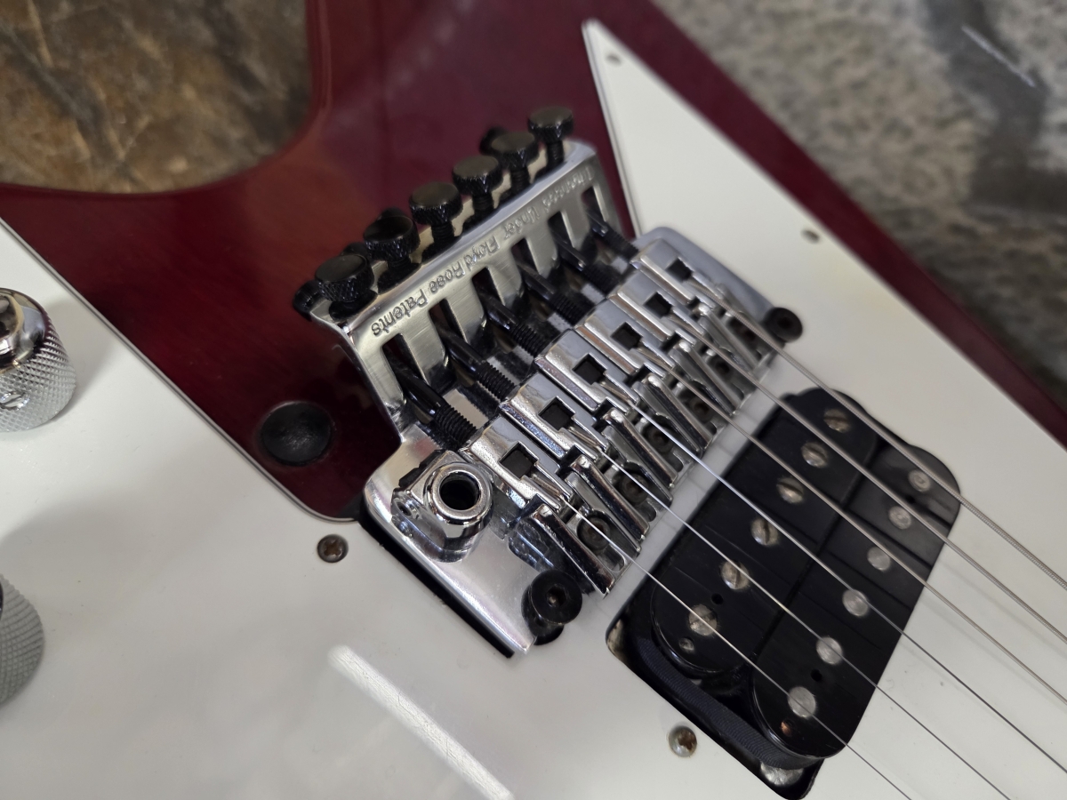 la guitare a reçu une modification par une luthier. installation d'un Floyd Gotho japan, avec cavité dans le corps pour y placer les ressorts.