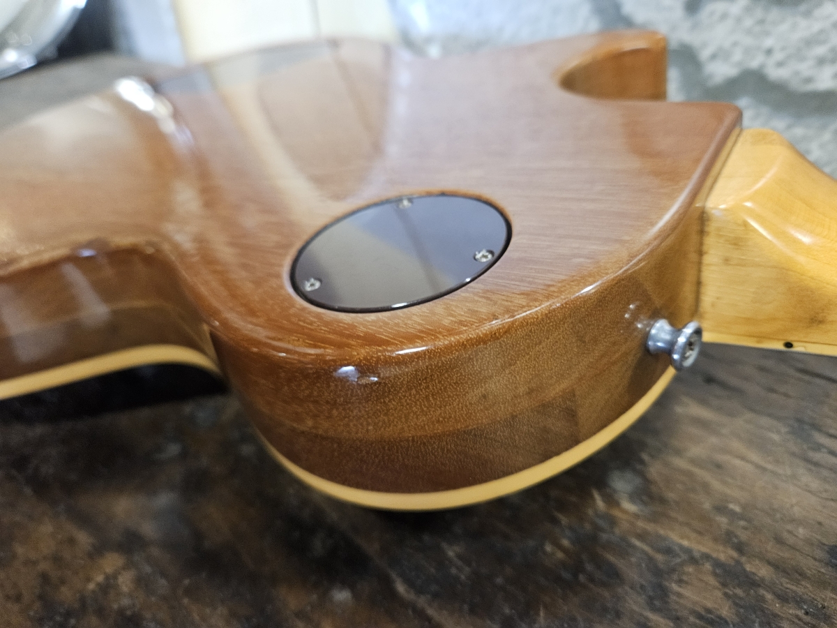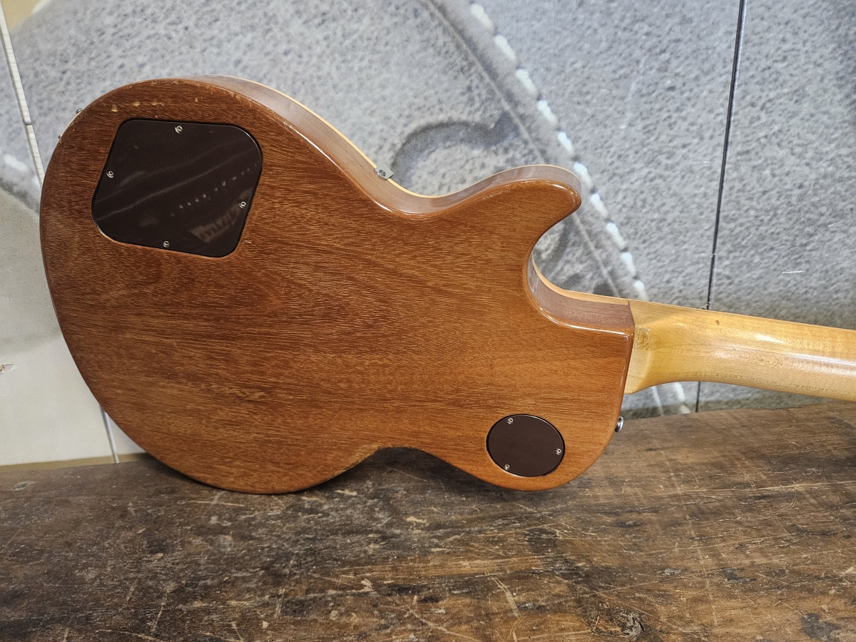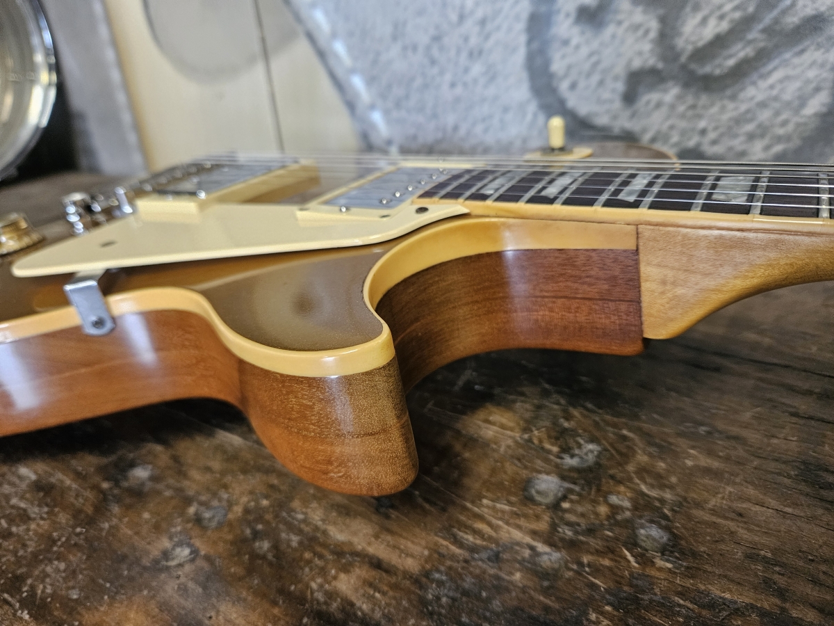 Gibson Les Paul Deluxe 1976 Gold top modifier pour pouvoir accepté des vrais Humbucker et non des minibucker d'origine.