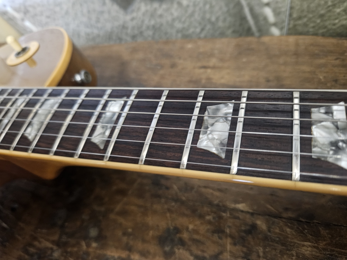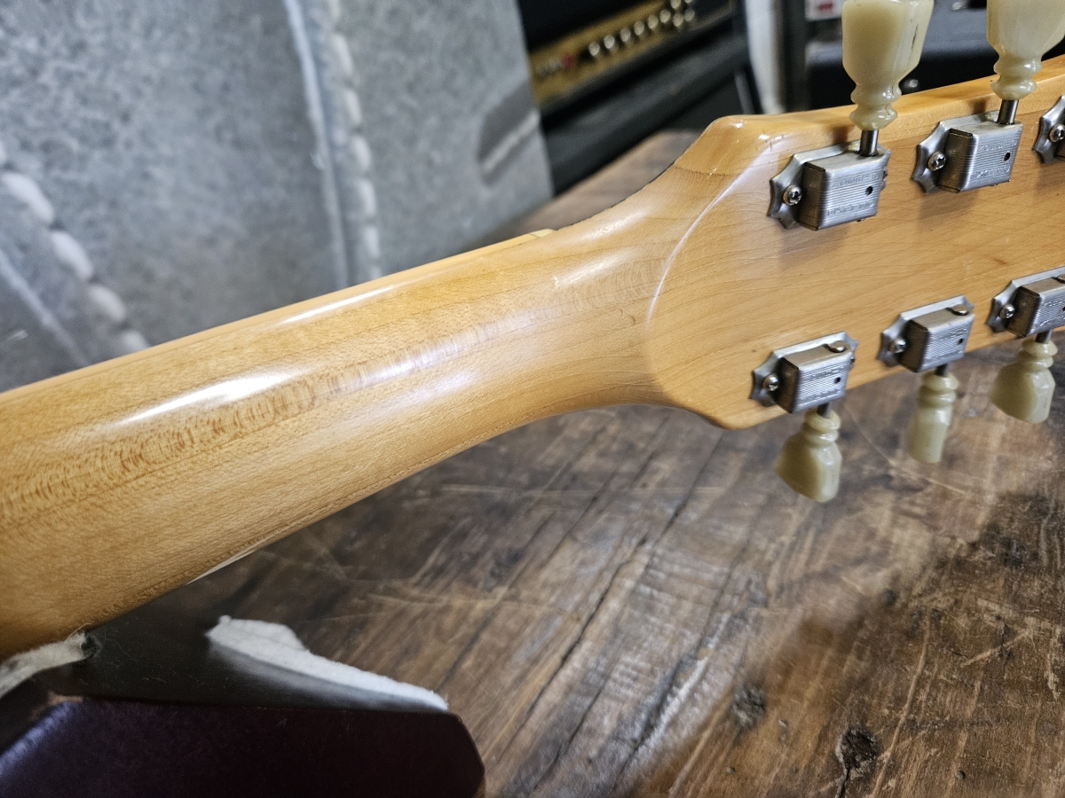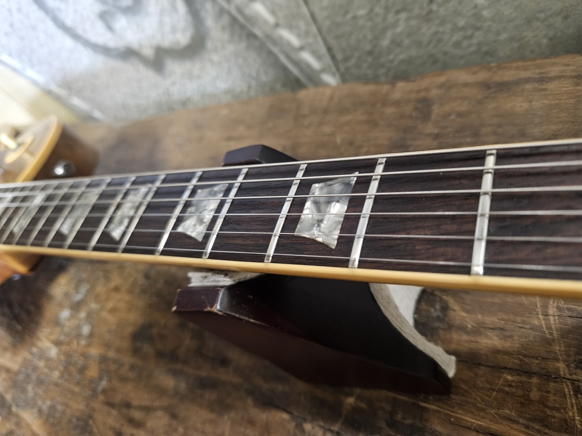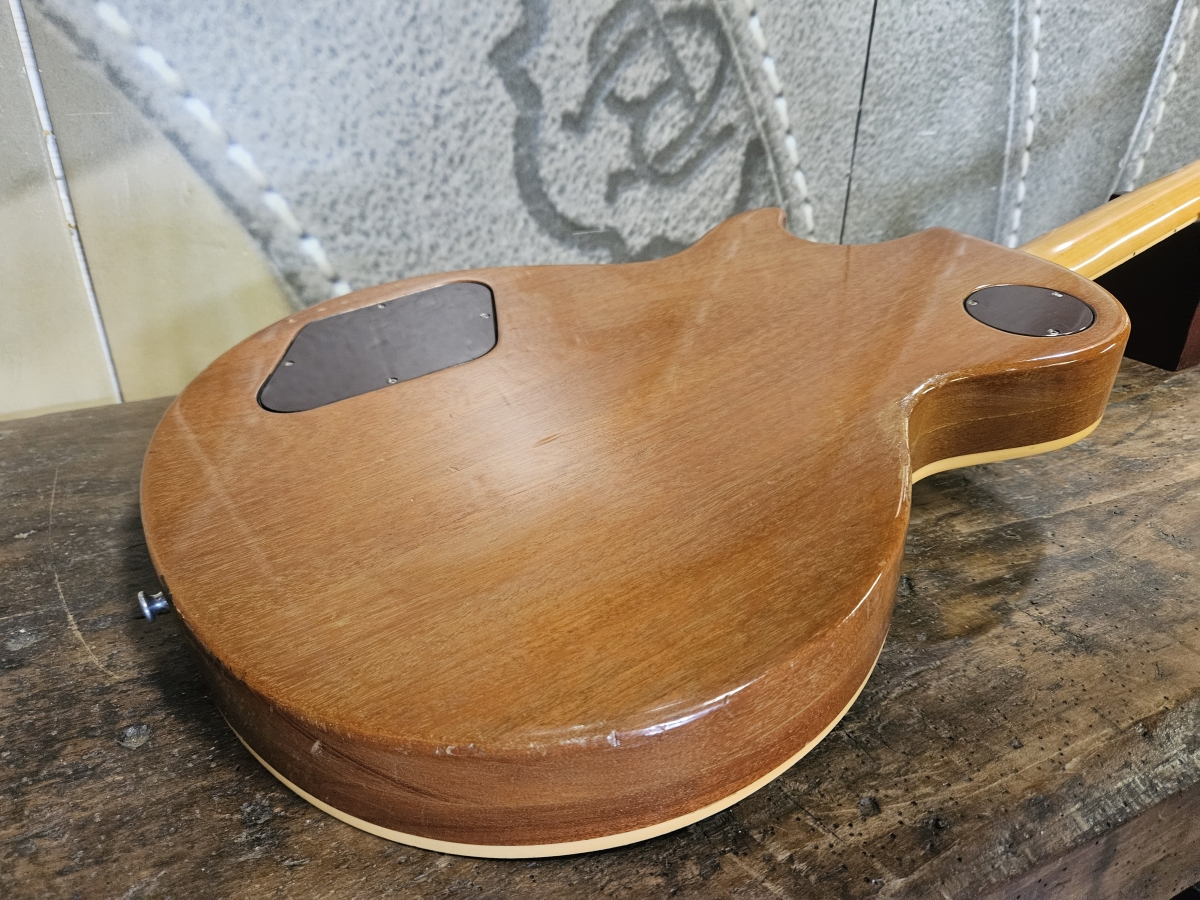 Gibson Les Paul Deluxe 1976 Gold top modifier pour pouvoir accepté des vrais Humbucker et non des minibucker d'origine.