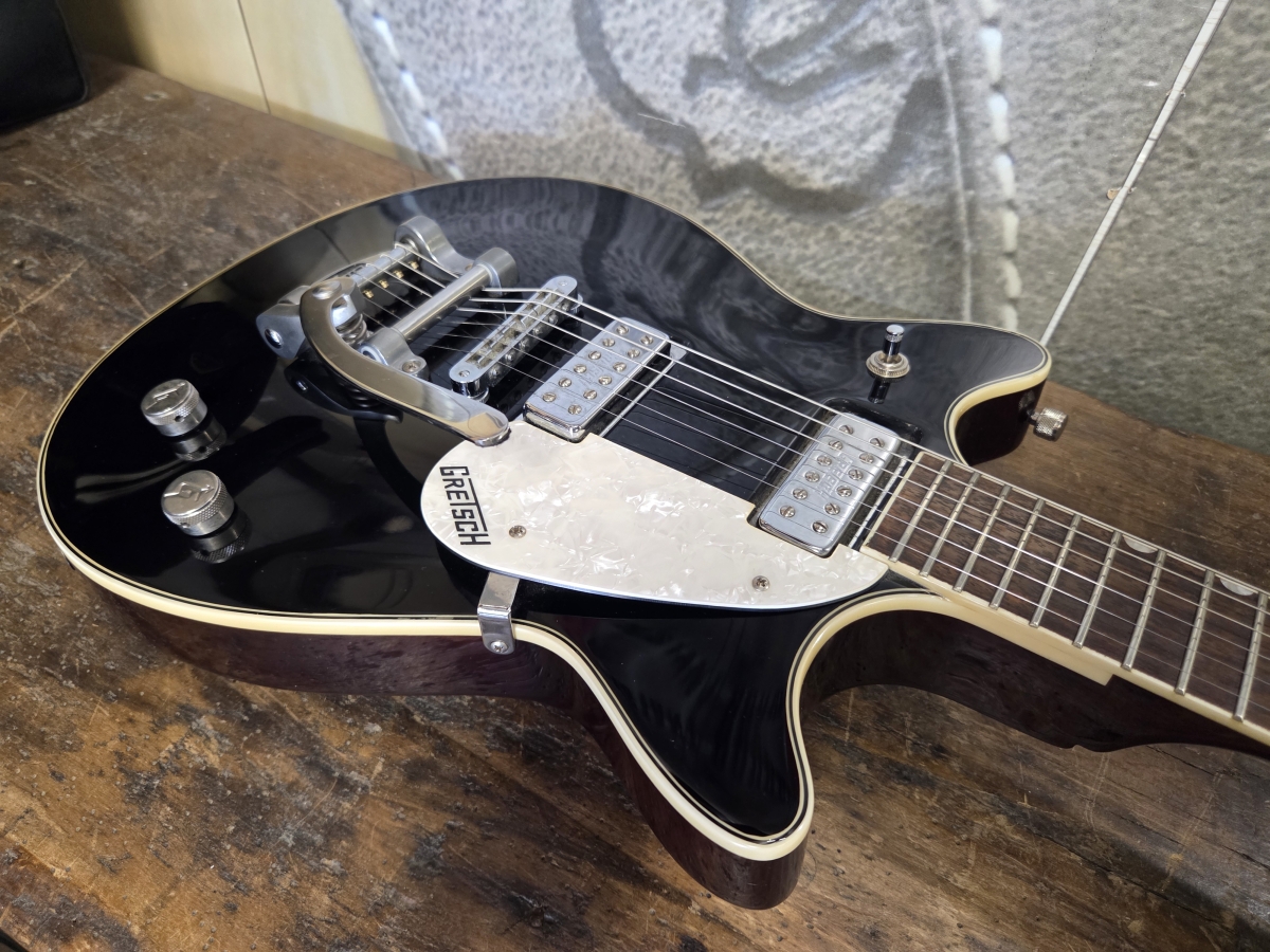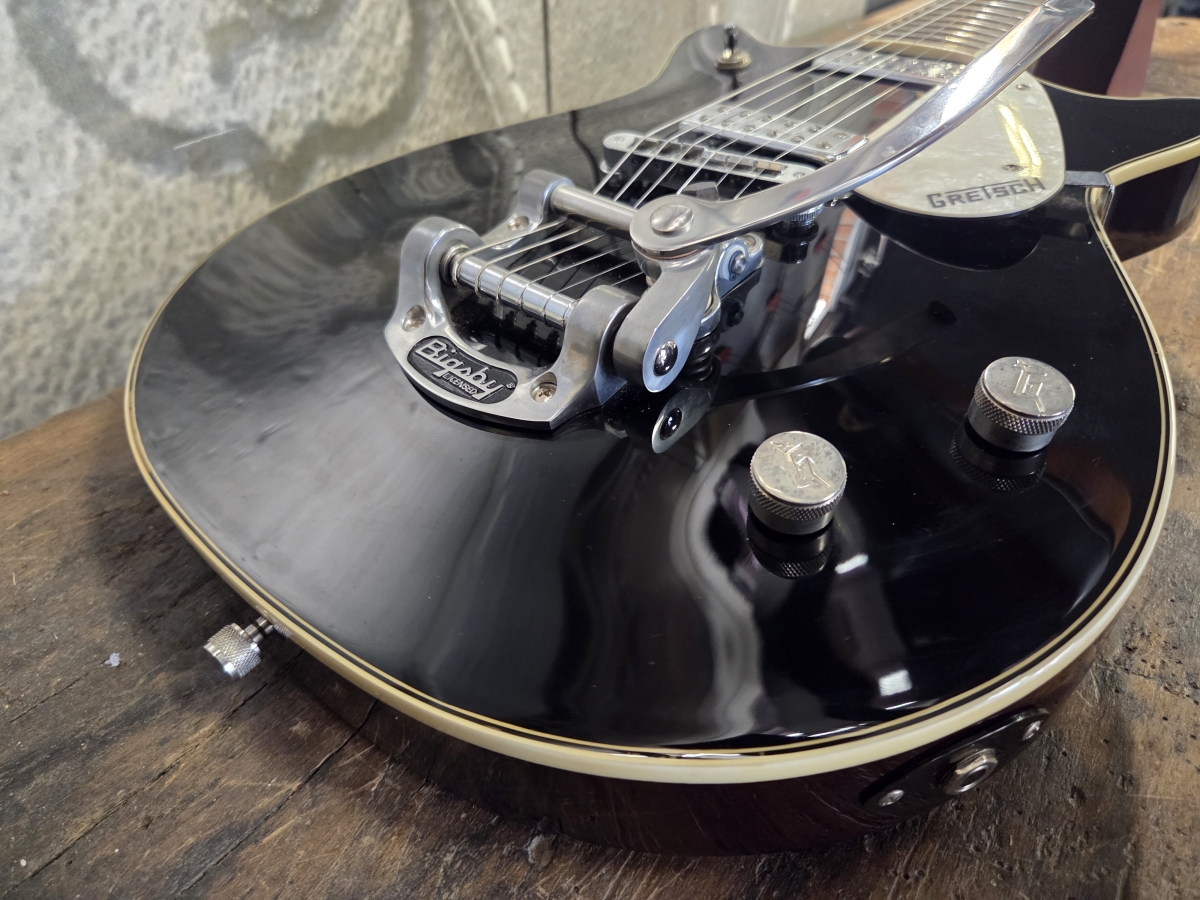 la G5232T Electromatic Double Jet FT est équipé de micros Filter'Tron qui produisent, selon la marque, un son clair, défini et punchy. Ils sont contrôlés par un volume chacun, une tonalité générale, un sélecteur à trois positions et un volume général, comme c'est presque systématiquement le cas chez Gretsch. La G5232T Electromatic Double Jet FT dispose donc d'un cordier Bigsby B50