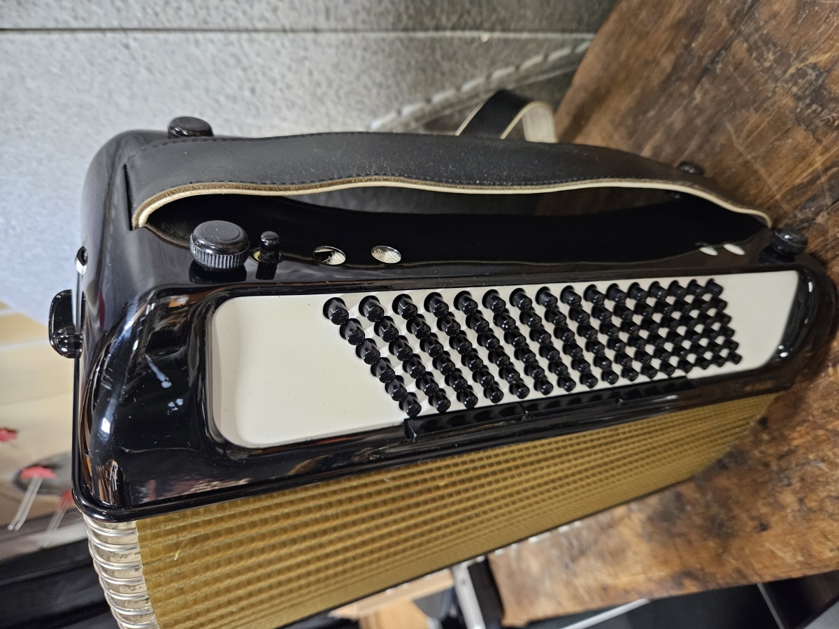 Hohner Lucia III - 96 basses, 8 registres, accordéon piano de qualité supérieure de fabrication allemande + étui rigide d'origine ~ MUSETTE
