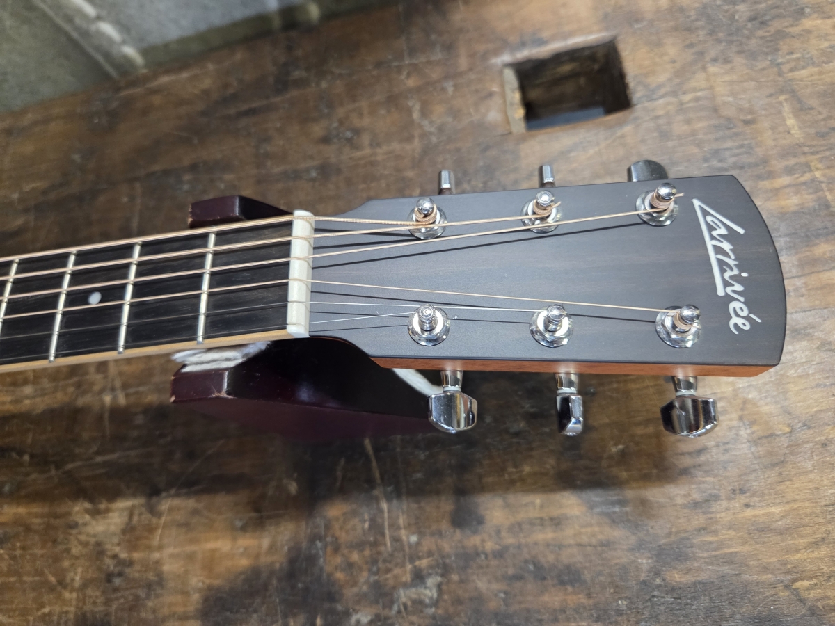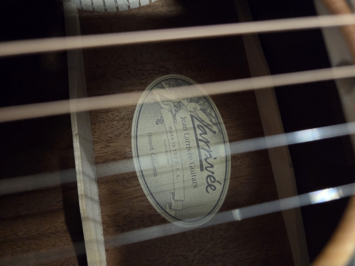 Composition du bois : manche en acajou, table en épicéa de Sitka canadien, touche en ébène, dos et éclisses en sapelli. Type de caisse : parlor . Guitaristes célèbres ayant joué sur des guitares Larrivée : Peter Yarrow, John Hiatt.