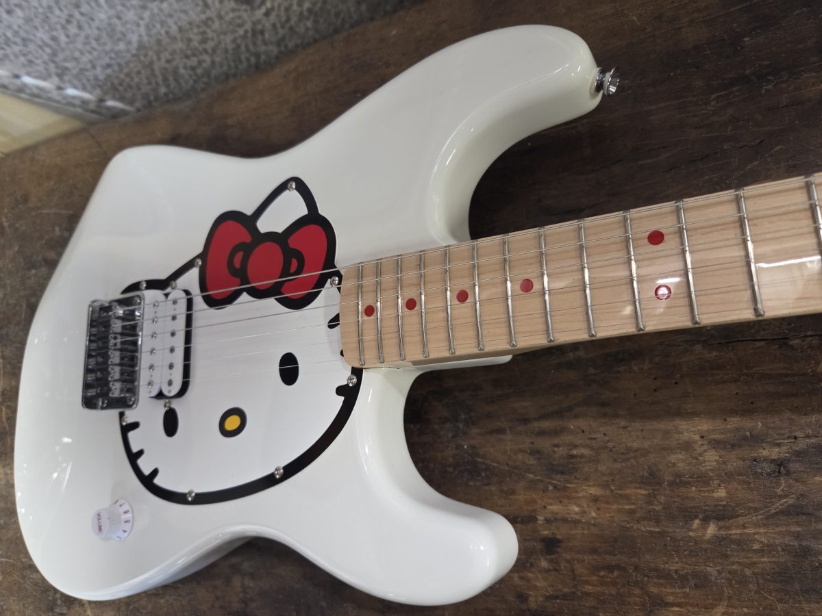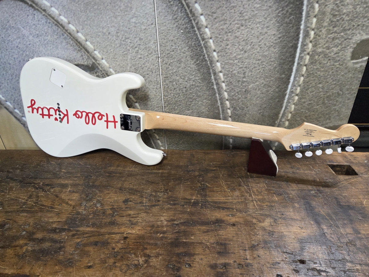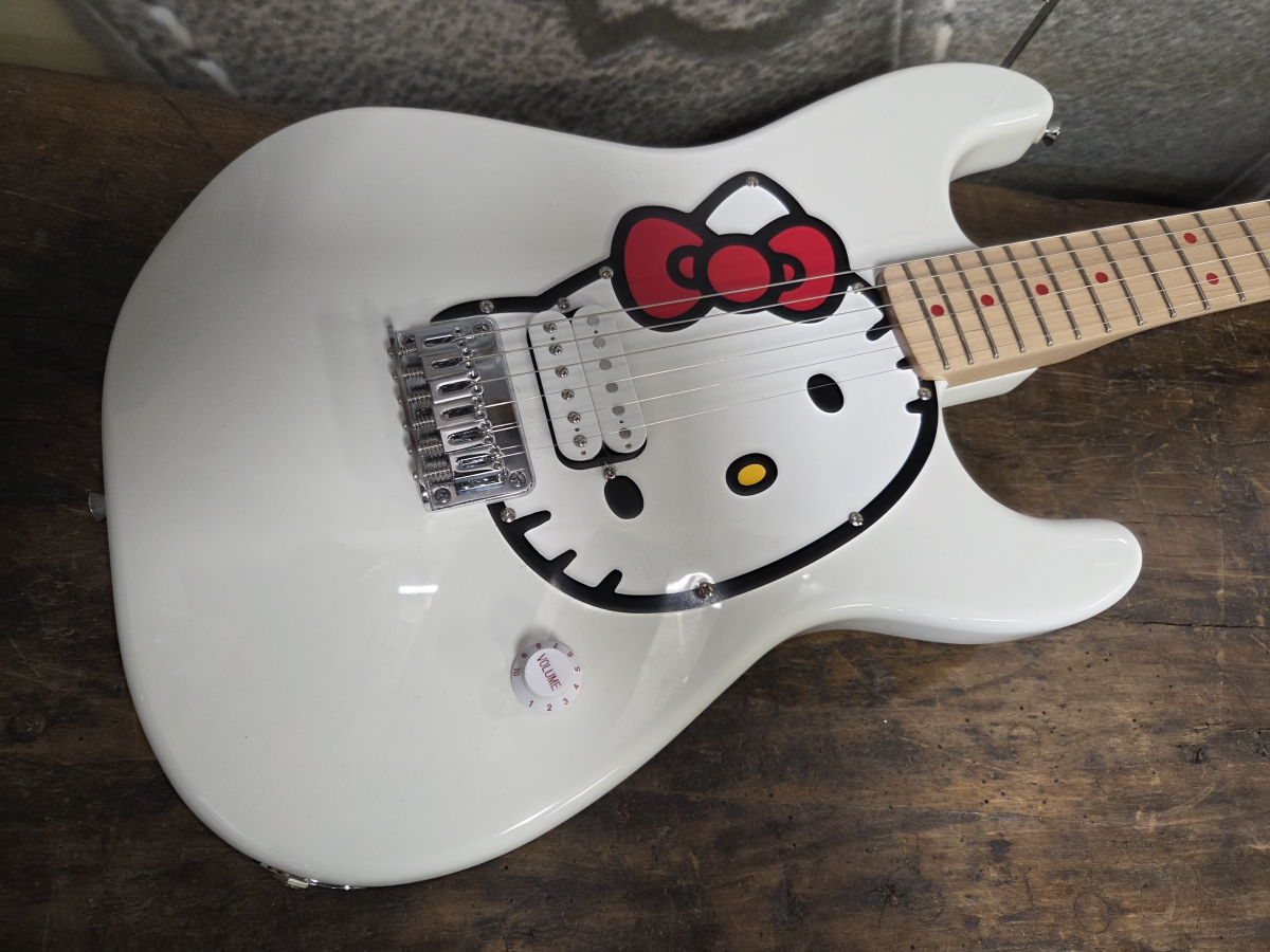 La guitare électrique solid body SQUIER Fender x Hello Kitty White Stratocaster with Gig Bag commémore le personnage culte inventé par la firme japonaise Sanrio dans les années 1970. On ne compte plus les produits dérivés mais à coup sûr, cette Stratocaster de belle qualité est appelée à devenir un véritable collector.