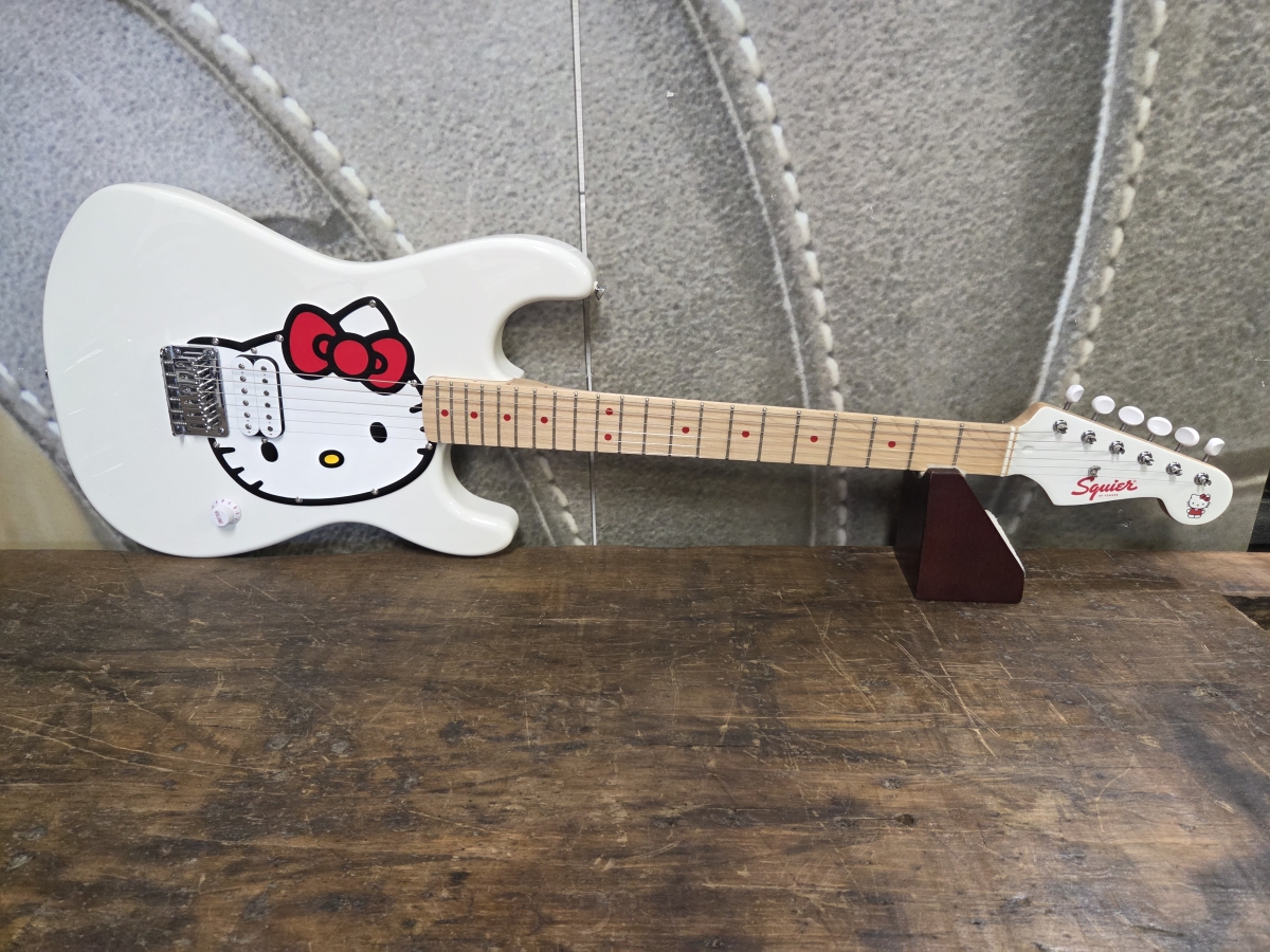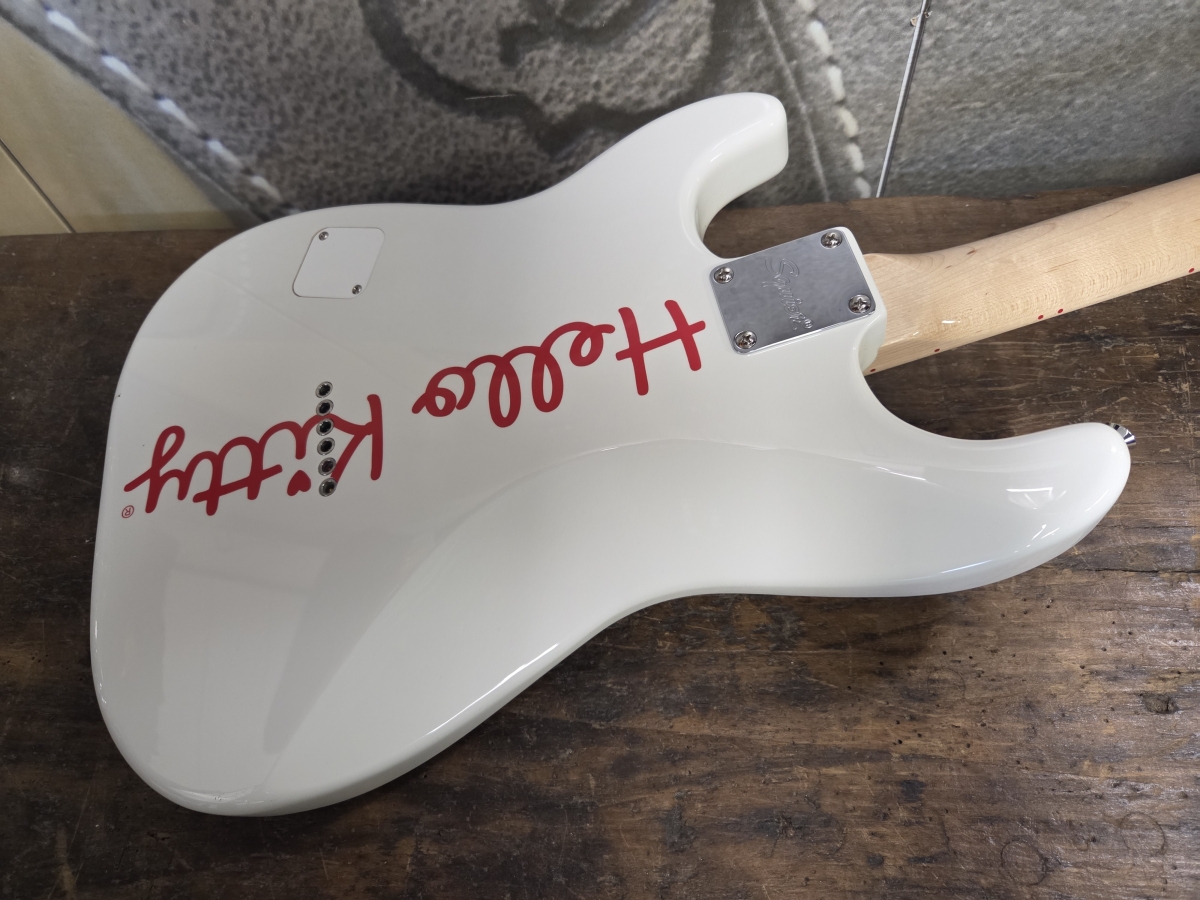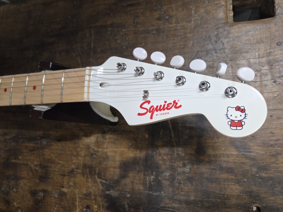La guitare électrique solid body SQUIER Fender x Hello Kitty White Stratocaster with Gig Bag commémore le personnage culte inventé par la firme japonaise Sanrio dans les années 1970. On ne compte plus les produits dérivés mais à coup sûr, cette Stratocaster de belle qualité est appelée à devenir un véritable collector.