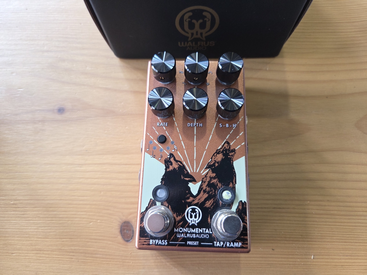 La Monumental Harmonic Stereo Tremolo de Walrus Audio est un tremolo analogique inspiré de la Monument, offrant des entrées et sorties stéréo, des préréglages, et un mélange de modes standard et harmonique pour une modulation riche et polyvalente.